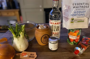 Add the fish (doesn’t matter if it is frozen or defrosted), the tin of tomatoes and the stock. Simmer gently for 15 minutes.